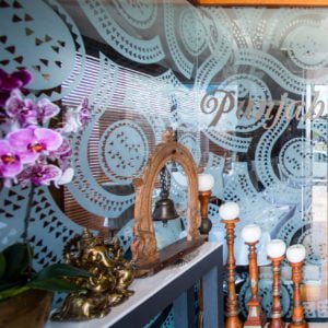 Our lush surrounds will transport you to India, featuring upholstered walls for the perfect acoustics, beautiful centerpiece floral arrangements, tea candles on every table and authentic antique Indian artefacts to set the mood.